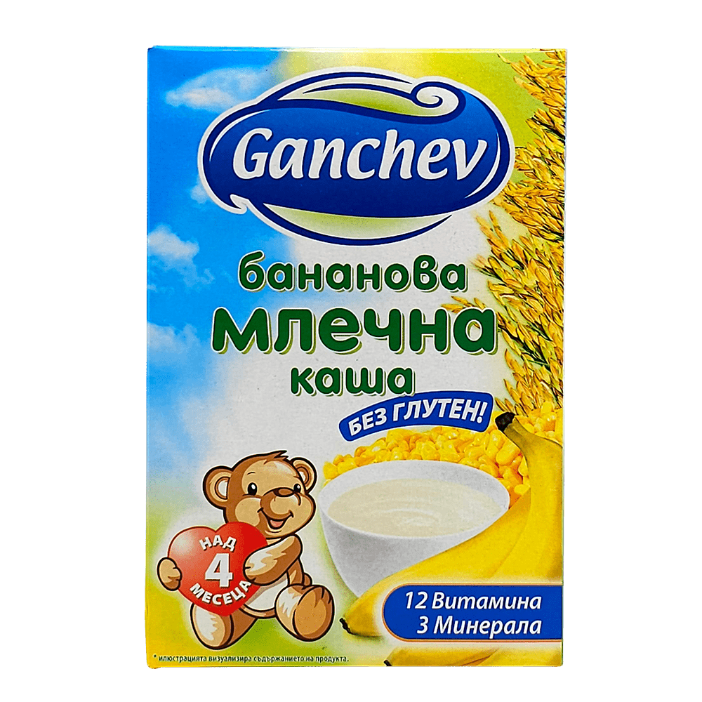Банановата млечна каша на Ганчев е пълноценна, лесносмилаема храна за бебета. Кашата може да се използва като допълнителна храна към млечното хранене. В зависимост от нуждите на вашето дете, можете да използвате пшеничната млечна каша за едно или две хранения на ден.